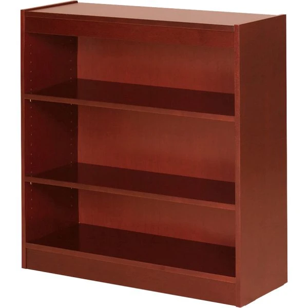 Lorell 3-Shelf Panel Wood Veneer Bookcase – High-quality, veneer bookcase features a vintage square design. Solid, 3/4 thick shelves are adjustable on 1-3/4″ centers with pinhole attachments, except for bottom shelf. Three-shelf bookcase has a laminate finish on the back’s interior and an unfinished back side. Each shelf holds up to 110 lb.
