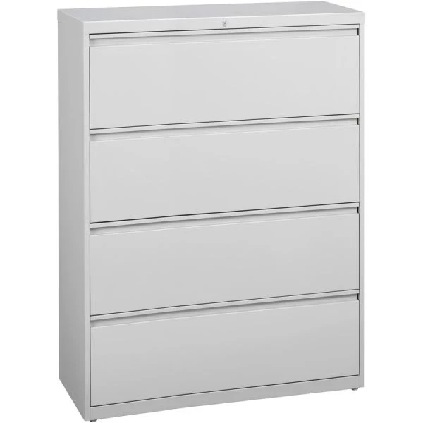 - 42 wide lateral file features four drawers with hanging file rails for side-to-side filing in letter-size, legal-size or A4-size.
