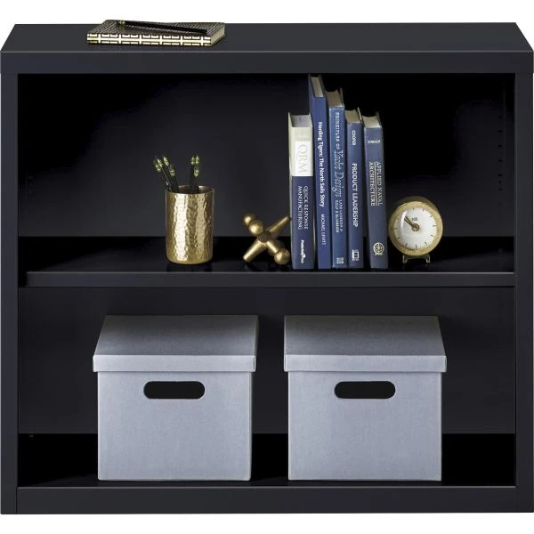 Lorell Fortress Series 2-Shelf Metal Bookcase – Two-shelf bookcase features fully adjustable shelves for flexible storage solutions. Shelves adjust in 1 increments, and each offers a 200 lb. capacity. The bottom shelf is fixed. Welded steel construction offers a powder-coat finish for durability. Bookcase meets or exceeds ANSI/BIFMA shelf standards.