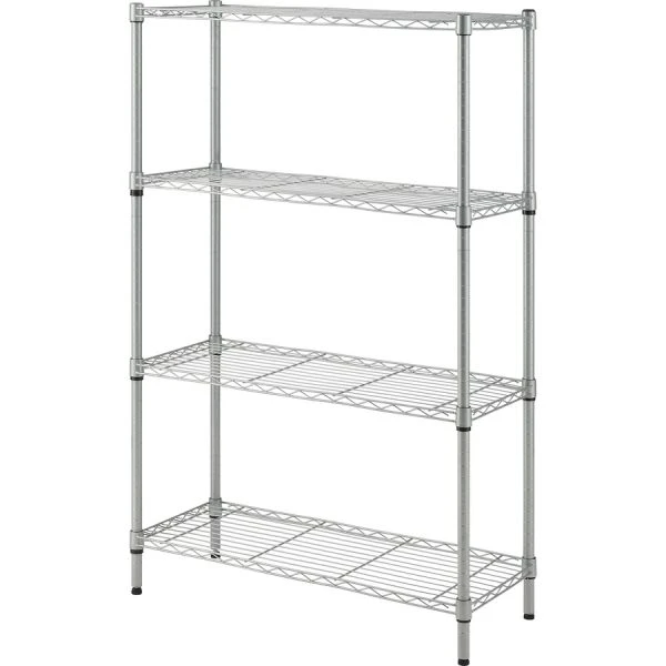Lorell Light-Duty Wire Shelving – Light-Duty Wire Shelving features a shine and elegance that can be used in public view as well as storage areas. The four steel wire shelves are supported by sturdy, 1″ diameter steel posts with a silver epoxy finish. Both shelves and posts have a silver epoxy finish. With a 250 lb. capacity per shelf, you can use the wire shelves for books, decor and supplies. Adjust shelves in 1″ increments to customize the space you need between them. You can also hang decor or other objects from the shelves using hooks (not included). Endcaps on the metal feet are made of plastic to prevent scuffing your floors.