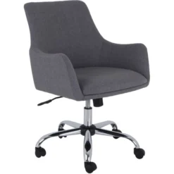 Lorell Mid-century Modern Guest Chair – Mid-century modern-inspired task chair with low-profile arms is upholstered with stylish fabric upholstery for a professional look. Seat and back are cushioned for comfort. Functions include adjustable seat height from 18-1/4″ to 22-1/4″ , 360-degree swivel, tilt tension adjustment and tilt/tilt lock. Chrome steel base is equipped with dual-wheel casters for easy movement.