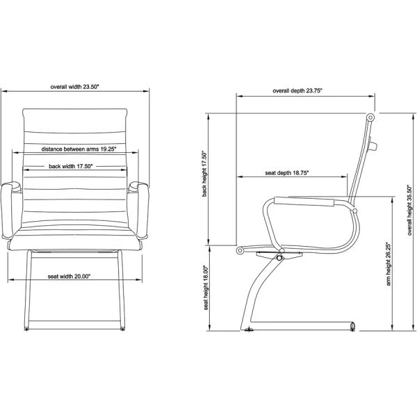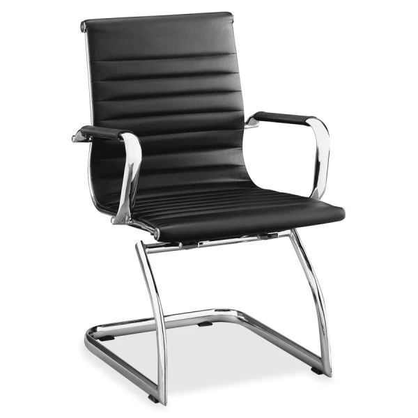 Lorell Modern Chair Mid-back Leather Guest Chairs – As part of Lorell’s Modern Chair Series, this guest chair features a one-piece molded seat and back with bonded leather cushions. Chromed metal arms are covered with leather pads for a professional look. Cantilever base is made of polished aluminum. Weight capacity is 275 lb.