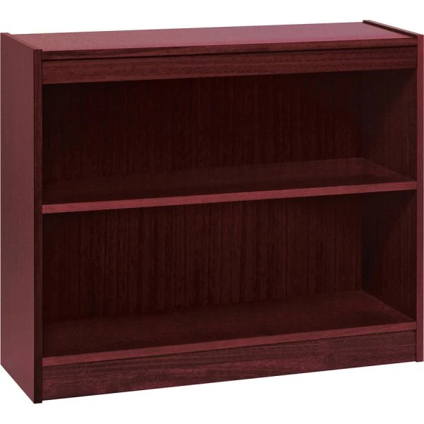 Lorell Panel End 2-Shelf Hardwood Veneer Bookcase – High-quality, veneer bookcase features a vintage square design. The bottom shelf is fixed. The other solid, 3/4 thick shelf is adjustable on 1-3/4″ centers with pinhole attachments. Two-shelf bookcase has a laminate finish on the back’s interior and an unfinished back side. Each shelf holds up to 110 lb.