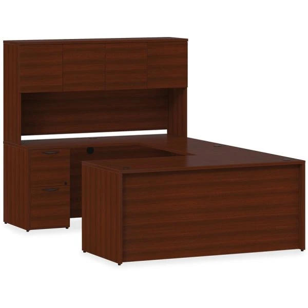 Lorell Prominence 2.0 Mahogany Laminate Bridge – Bridge is part of the Lorell Prominence 2.0 Series that offers an elegant design perfect for your executive office suites. Durable, Mahogany laminate surface is mar-resistant, burn-resistant and impact-resistant to withstand hectic, daily work life. The 1″ thick top features matching 3mm edgebanding. Bridge is manufactured with 45 lb. density particleboard and finished on both sides with high-performance, thermally fused melamine. It is not freestanding and not shipped fully assembled like the other items in the series. Pair the bridge with single-pedestal desks to create L-shaped or U-shaped configuration to suit your office needs. The 3/4″ adjustable glides allow the bridge to remain level on uneven surfaces. Grommet in the top allows convenient cord management.