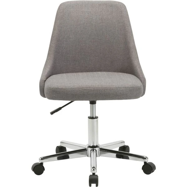 Lorell Task Chair – Mid-century modern-inspired task chair with no arms is upholstered with stylish gray fabric for a professional look. Seat and back are cushioned for comfort. Simple design features 360-degree swivel and seat-height adjustment. The five-star chrome base is equipped with smooth-rolling casters. Task chair meets BIFMA requirements.