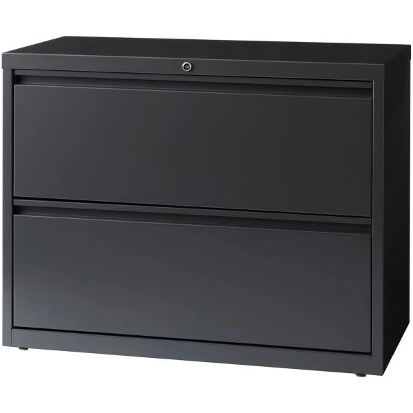 Lorell Two-Drawer Lateral File, Letter/Legal/A4, 36″ Wide, Charcoal – 36 wide lateral file features two versatile drawers with hanging file rails for side-to-side filing of letter-size, legal-size or A4-size folders. Each drawer has a magnetic label holder for easy identification where you need it. Design also features a core-removable lock for security, dual locking bars, full-width pull, ball-bearing slide suspension for smooth opening and closing, reinforced base, and four adjustable leveling guides for stabilization. Interlock system prohibits the extension of more than one drawer at a time for your safety. Counterweight prevents tipping. Lateral file meets or exceeds applicable ANSI/BIFMA standards.