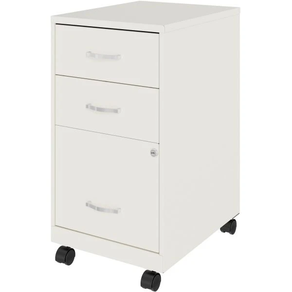 LYS SOHO 3-Drawer Organizer Metal File Cabinet – Part of the LYS SOHO Collection, this 3-Drawer Organizer Metal File Cabinet is perfect for storing files, supplies and accessories for your small office or home office. With one file drawer and two storage drawers, it features a smart, efficient design that works well in small spaces and fits under most worksurfaces or desks. Each drawer features high sides to accommodate letter-size hanging files. Store your office essentials in the top two accessory drawers. The included four wheels are both stylish and functional, making it easy to move around your home or office. With the wheels, the file cabinet is 24-1/2″ high. Using a patented glide suspension, the drawers have a smooth open and close slide with a 3/4 drawer extension to prevent tipping. Built-in lock for the bottom two drawers keeps your files and select possessions secure.