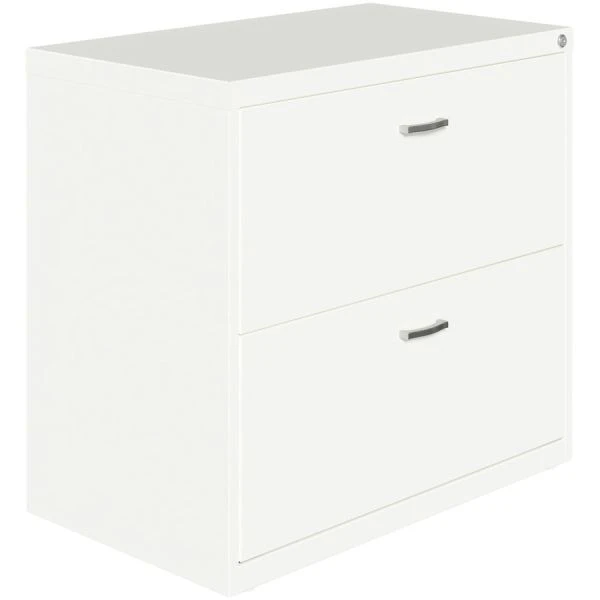 LYS SOHO Lateral File – Durable, SOHO Lateral File is the perfect-sized filing solution for a small or home office. Sleek arc pull adds a touch of sophistication to your work area. Two-drawer lateral file offers side-to-side filing for letter-size folders with the included hanging file rails to meet your filing needs. Interlock system prohibits the extension of more than one drawer at a time to prevent tipping. Both versatile file drawers offer three-part, steel ball-bearing, slide suspension. Lateral file is equipped with a core-removable lock for security and two adjustable leveling guides for stabilization. Durable, fully assembled, steel construction with nonporous surface is easy to clean and disinfect. Lateral file meets and/or exceeds applicable ANSI/BIFMA standards.