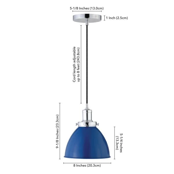Madison 8″ Wide Pendant with Metal Shade in Blue/Polished Nickel/Blue – Timeless and elegant, this pendant offers countless possibilities. Its classic styling complements a wide range of decor styles, whether in your living room, dining room, kitchen, or foyer. The exposed mechanical element of the screws pays homage to a nautical inspiration, but your choice of handcrafted finish keep it updated with a modern look.