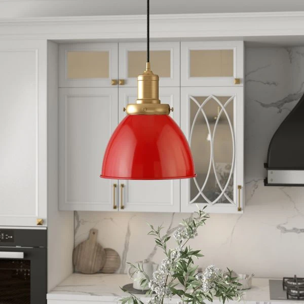 Madison 8″ Wide Pendant with Metal Shade in Poppy Red/Brass/Poppy Red – Timeless and elegant, this pendant offers countless possibilities. Its classic styling complements a wide range of decor styles, whether in your living room, dining room, kitchen, or foyer. The exposed mechanical element of the screws pays homage to a nautical inspiration, but your choice of handcrafted finish keep it updated with a modern look.