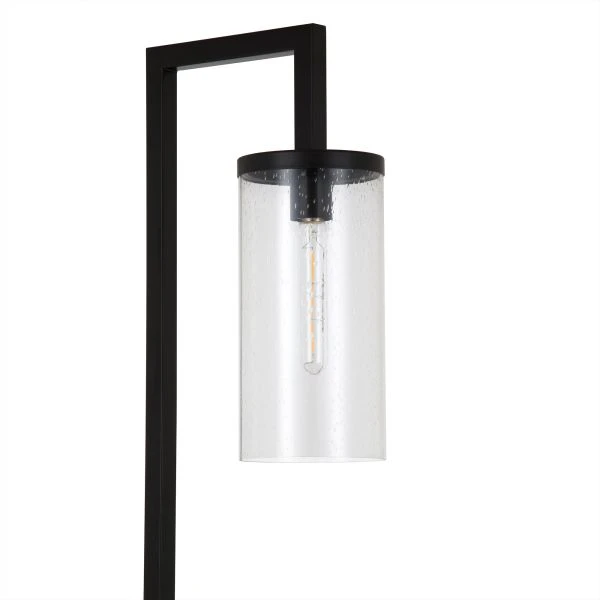 Malva 67.75″ Tall Floor Lamp with Glass Shade in Blackened Bronze/Seeded – Illuminate your space is clean, modern style with this versatile floor lamp. Crafted of steel in a neutral metallic finish, this lamp strikes a clean-lined hook-shaped silhouette on an open square base. Suspended from its arced top, a glass cylinder shade diffuses ambient light as it’s dispersed throughout your space.