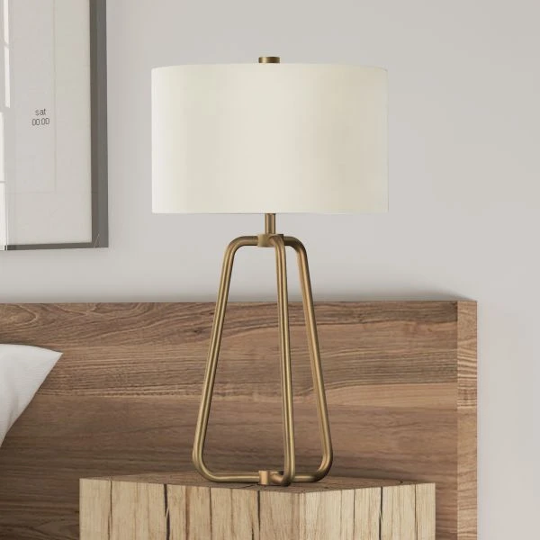 Marduk 25.5″ Tall Table Lamp with Fabric Shade in Brass/White – This brass lamp is an update on mid-century modern design, mixing soft curves with clean lines.