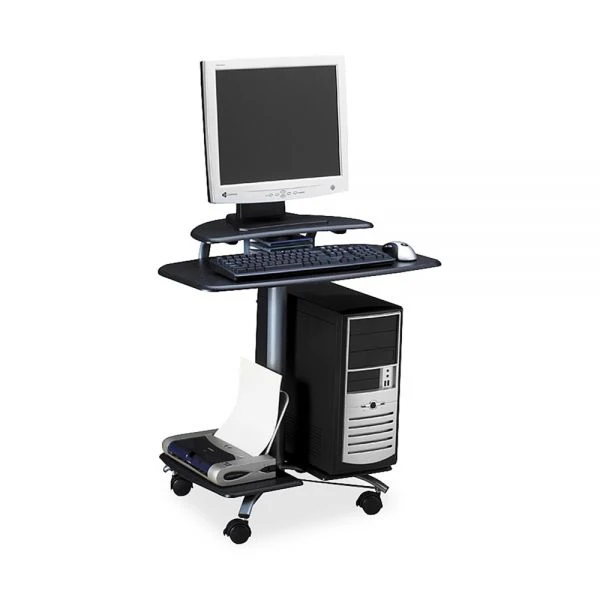 MayLine Small Office – Home Office Metalic Gray Paint, Anthricite Thermofoil FPD Computer Table – FPD Computer Table has raised flat panel platform. Printer and CPU platforms. CD holder. Mobile on 4 locking casters.