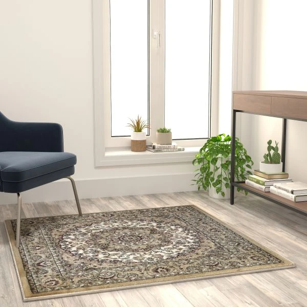 - Medallion Motif 4′ x 4′ Square Area Rug for Living Room or Bedroom