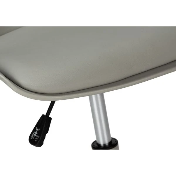 Office Chair, Adjustable Height, Swivel, Ergonomic, Computer Desk, Work, Juvenile, Grey Leather Look, Grey Metal, Contemporary, Modern – Sized especially for kids, this small desk chair will provide your child with a supportive, comfortable place to sit when they work and play. It features ergonomic design with a lowered back rest to promote good posture and a padded seat with a soft feel. A convenient lever underneath the seat allows the chair to be adjusted to the best height for your child’s size. A swivel seat and a stable, 5-star base with casters that roll smoothly in all directions make moving the chair easy and fun! You and your child will give this juvenile, low-back office chair in grey with a grey metal base good grades for its support, comfort, and functionality.