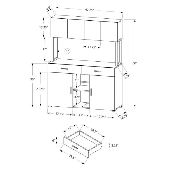 - 2 spacious lower storage cabinets with adjustable shelving