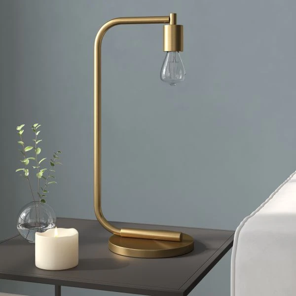 Morgan 20.5″ Tall Arc Table Lamp with No Shade in Brass/No Shade – Elevate your bedside, reading nook, or home office set-up with the clean lines of this industrial-inspired table lamp. The minimalist design is shadeless, allowing you to customize this piece to fit your own style inspiration. Pair with an Edison bulb for a vintage style, or choose a globe bulb for a modern farmhouse vibe.