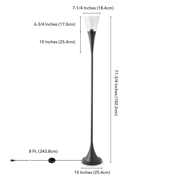 Moura Torchiere Floor Lamp with Glass Shade in Blackened Bronze/Seeded – Brighten a contemporary or modern living space with the chic style of this torchiere floor lamp. The style is smooth and alluring with subtle curves and a sleek metallic finish. On top, a glass shade flares upward, balancing the tapered base below and completing the polished yet organic look.