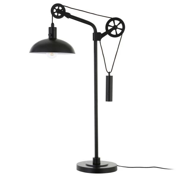 Neo 33.5″ Tall Spoke Wheel Pulley System Table Lamp with Metal Shade in Blackened Bronze/Blackened Bronze – Fusing function and industrial style, this desk lamp is the statement piece you need on your table top. It features a streamlined pulley system so you can adjust its height to suit your task. Crafted from metal in your choice of neutral metallic finishes, this table lamp is perfect for a vintage-inspired look on your desk. A dome-shaped shade completes the look for your office or bedroom ensemble.