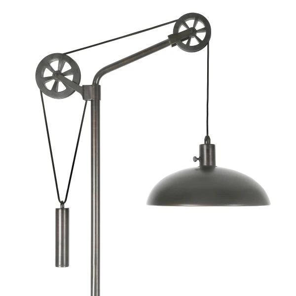 Neo Spoke Wheel Pulley System Floor Lamp with Metal Shade in Aged Steel/Aged Steel – Fusing function and industrial style, this standing lamp is the statement piece you need in your living room or bedroom. It features an industrial-inspired pulley system so you can adjust its height to suit your task. Crafted from metal in your choice of neutral metallic finishes, this floor lamp is perfect for a modern-inspired space. A dome-shaped shade completes the look for your office or bedroom ensemble.