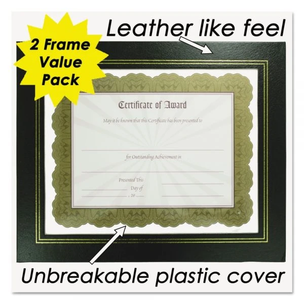 NuDell Leatherette Document Frame, 8.5 x 11, Black, Pack of Two – Flat Leatherette Frames feature the rich look of leather with a plastic face. Holds 8-1/2 x 11″ documents. Offers easel back and hangers for horizontal, vertical desk or wall display.