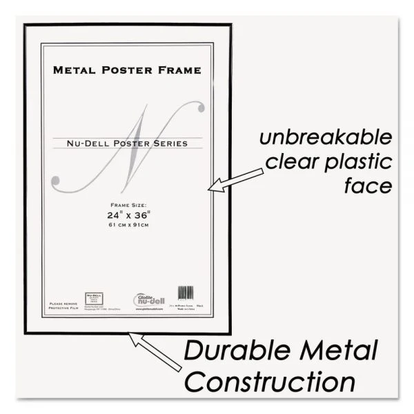 NuDell Metal Poster Frame, Plastic Face, 24 x 36, Black – Metal frame features shatterproof protective plastic cover. Use included back clips to mount posters and prints quickly and easily.