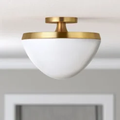 Dufrene 2-Light Floor Lamp With Glass Shades In Brass/White Milk