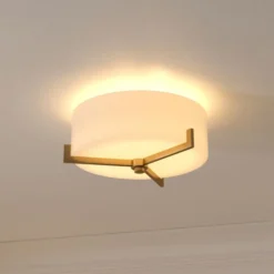 Hamlin 17″ Wide 2-Light Semi Flush Mount With Fabric Shade In Brushed Brass/White