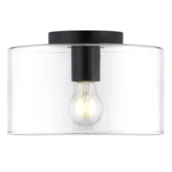 Henri 10″ Wide Flush Mount With Glass Shade In Matte Black/Clear