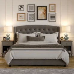 Katrina 23.5″ Tall Table Lamp With Fabric Shade In Mercury Glass/Satin Nickel/White