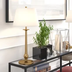 Wilmer 28″ Tall Table Lamp With Fabric Shade In Brushed Nickel