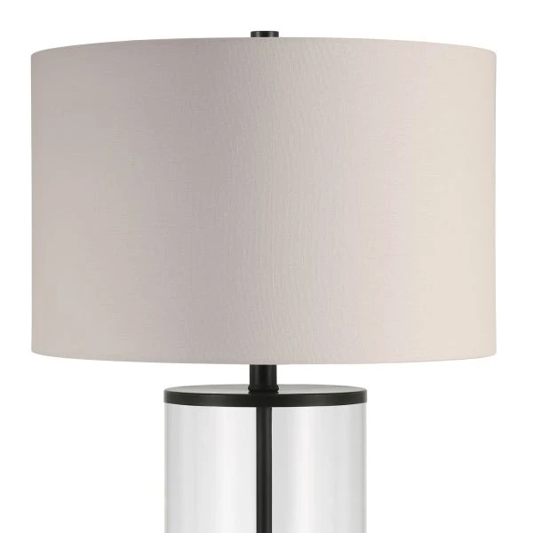 Rowan 28″ Tall Table Lamp with Fabric Shade in Blackened Bronze/White – This table lamp in blackened bronze and glass casing exemplifies classical understated design.