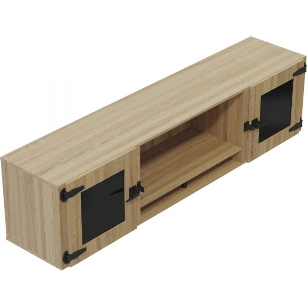 - Hutch features one decorative shelf, dividing the center space between the two cabinet doors on the sides