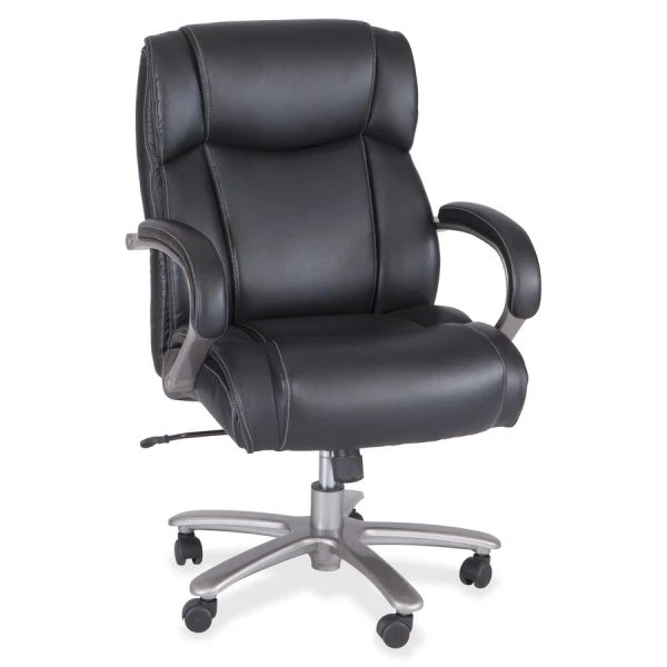Safco Big & Tall Mid-Back Task Chair – This Big & Tall Mid-Back Task Chair is ideal for use in personal work spaces or conference rooms. The mid-back design provides a comfortable back support and features black bonded leather on all seating surfaces for a comfortable and professional-looking chair. Heavy-duty height and tilt mechanisms allow you to quickly and easily adjust the height and tilt of the chair to your optimal comfort level. Height-adjustment ranges from 42″ to 46″ to suit a variety of users. This long-lasting chair also features chrome metal armrests with upholstery pads for comfortable, ergonomic support. The sturdy, 29″ chrome metal base is mobile on 55mm heavy-duty casters (wheels) to provide smooth movement across the work space. Chair offers a weight capacity up to 400 lb.