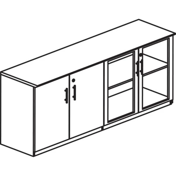 Safco Mayline Medina Series Low Wall Cabinet with Doors, Gray Steel, Box1 – Combines Italian-influenced designs, style and durability with economical pricing. Self-closing hinged doors. One shelf on each side adjusts in 1 1/4″ increments. Two sets of doors lock separately but are keyed alike. Curved metal pulls with brushed nickel finish. 1″ thick top. Exceptional abrasion and stain resistance.