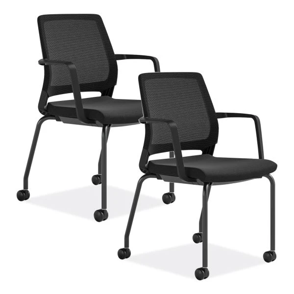 Safco Medina Guest Chair – Welcome guests with the inviting comfort of the versatile, Medina Guest Chair. It is an ideal solution for guest seating, training rooms, cafeterias and break areas. Mesh back, cushioned seat and fixed arms provide instant support and comfort. Smooth-rolling casters on the four-leg base allow easy mobility. Part of a full-family seating solution, Medina brings comfort and enhances productivity everywhere your work happens. Guest chair supports up to 275 lb. Seat measures 18″ wide x 18″ deep x 22″ high. Back size is 18″ wide x 16″ high.