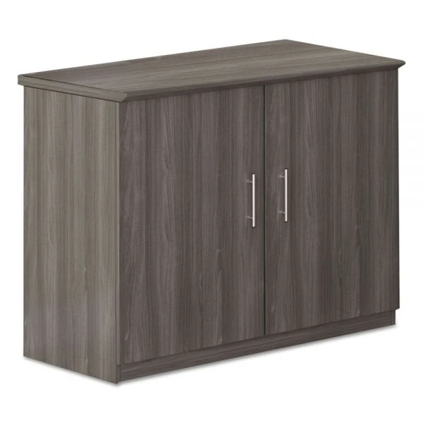 Safco Medina Series Storage Cabinet, 36w x 20d x 29.5h, Gray Steel – Combines Italian-influenced designs, style and durability with economical pricing. Self-closing hinged doors. One shelf adjusts in 1 1/4″ increments. Curved metal pulls with brushed nickel finish. 1″ thick top. Exceptional abrasion and stain resistance.