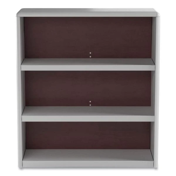 Safco ValueMate Economy 3-Shelf Steel Bookcase – Bookcase features a strong steel exterior, shelf construction, and solid fiberboard back. Plastic snap-in radius corners make assembly easy and add to the overall strength. Shelves adjust at 1″ increments during assembly. Generous 12″ deep steel shelves accommodate three-ring binders and large publications. Fixed bottom is counted as a shelf. Bookcase is made of 50 percent recycled material and weighs 30 lbs.