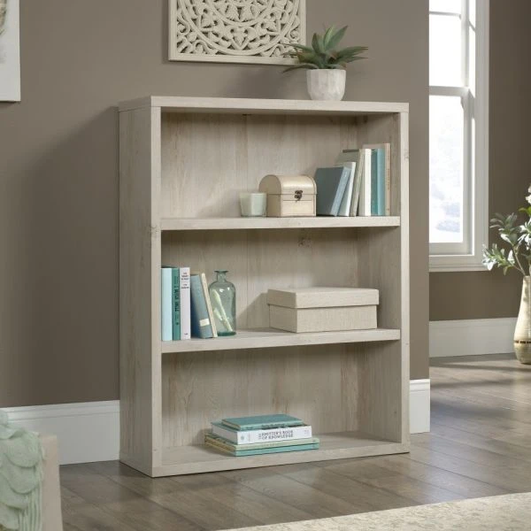 Sauder Optimum Bookcase, 45″H, 3 Shelves, Chalked Chestnut – Create a contemporary space with the help of this Sauder Optimum bookcase, which features a wide panel wrap construction. It’s perfect for displaying books, framed photos and other decorative items.