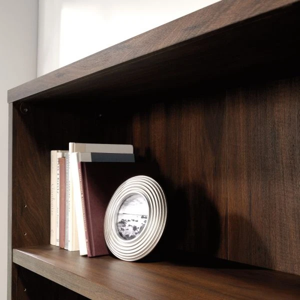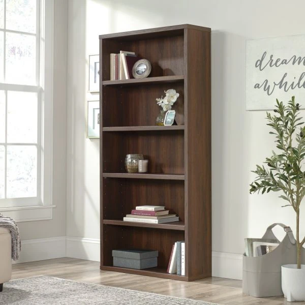 Sauder Optimum Bookcase, 73-1/2″H, 5 Shelves, Spiced Mahogany – Create a contemporary space with the help of this Sauder Optimum bookcase, which features a wide panel wrap construction. It’s perfect for displaying books, framed photos and other decorative items.