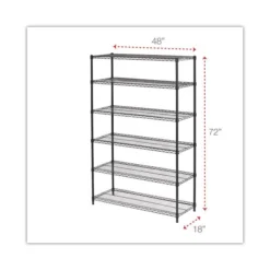 Alera NSF Certified 6-Shelf Wire Shelving Kit, 48w X 18d X 72h, Black