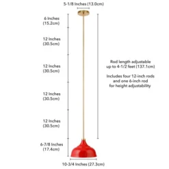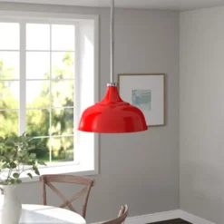 Mackenzie 10.75″ Wide Pendant With Metal Shade In Poppy Red/Polished Nickel/Poppy Red