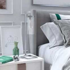 Malva 26″ Tall Table Lamp With Glass Shade In Polished Nickel/Clear