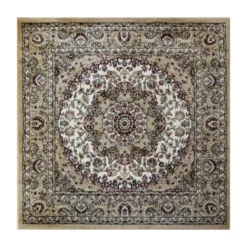 Mersin Collection Persian Style 4×4 Ivory Square Area Rug-Olefin Rug With Jute Backing-Hallway, Entryway, Bedroom, Living Room