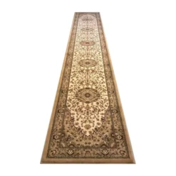 Mersin Collection Persian Style 3′ X 20′ Ivory Area Rug – Olefin Rug With Jute Backing – Hallway, Entryway, Bedroom, Living Room