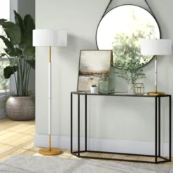 Simone 2-Light Floor Lamp With Fabric Shade In Rustic Oak/Brass/White