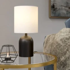 Talbot 13.25″ Tall Mini Lamp With Fabric Shade In Brass/White