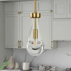 Twyla 5″ Wide Pendant With Glass Shade In Brushed Brass/Clear