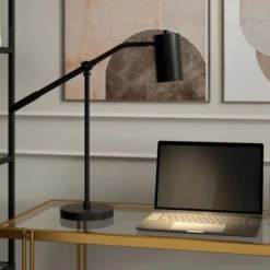 Willis 24″ Tall Boom Arm Table Lamp With Metal Shade In Blackened Bronze/Blackened Bronze
