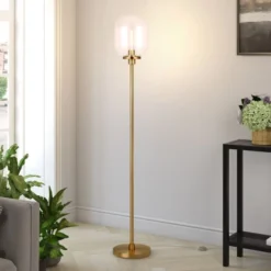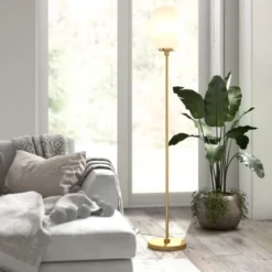 Agnolo 69″ Tall Floor Lamp With Glass Shade In Brass/White Milk